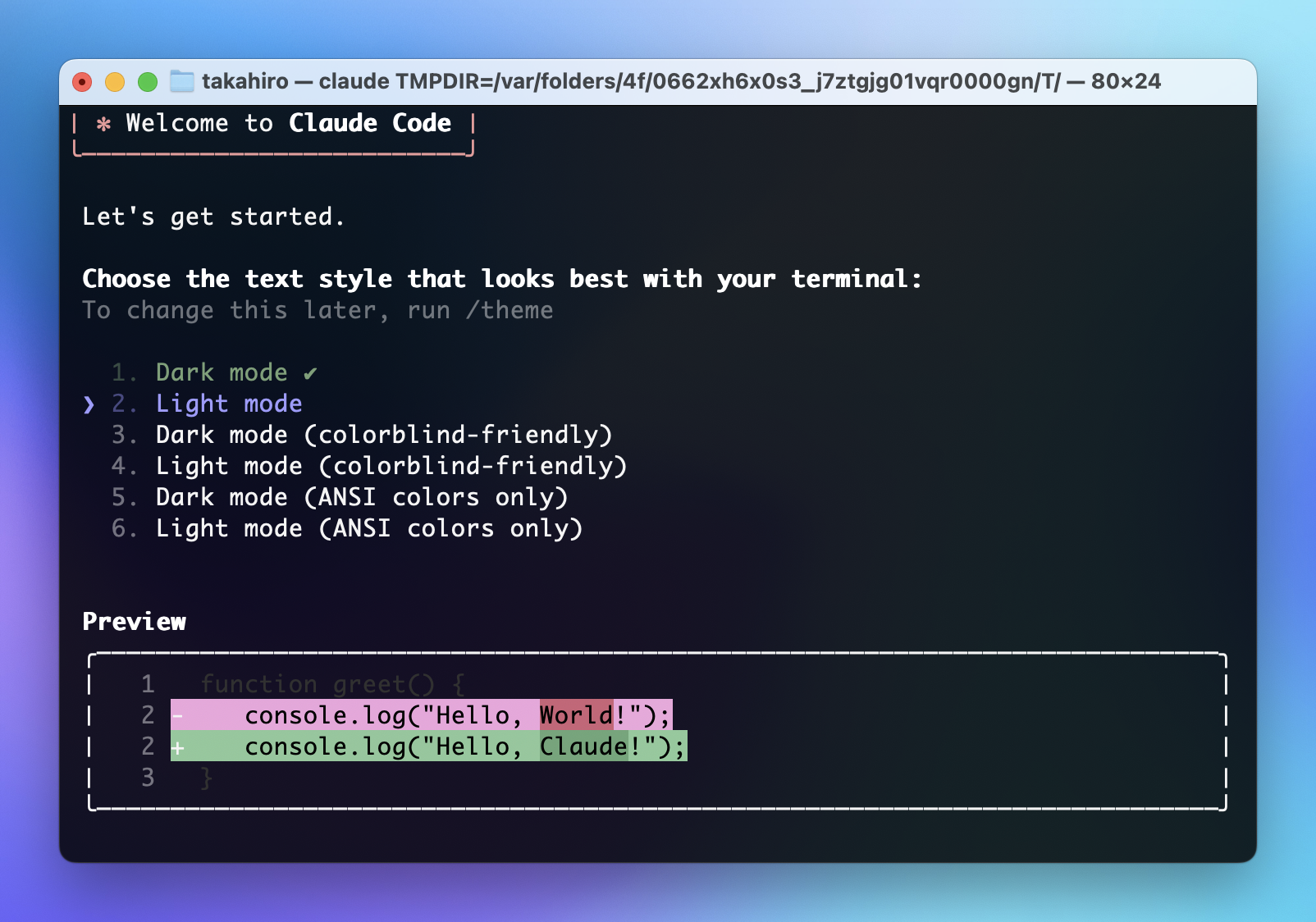 Claude.ai のサブスクプション(月額、年間などの有料プランを申し込んでいる方。Pro、MAX、Teamなど)は、以下のようにClaude Codeにログインしてください。