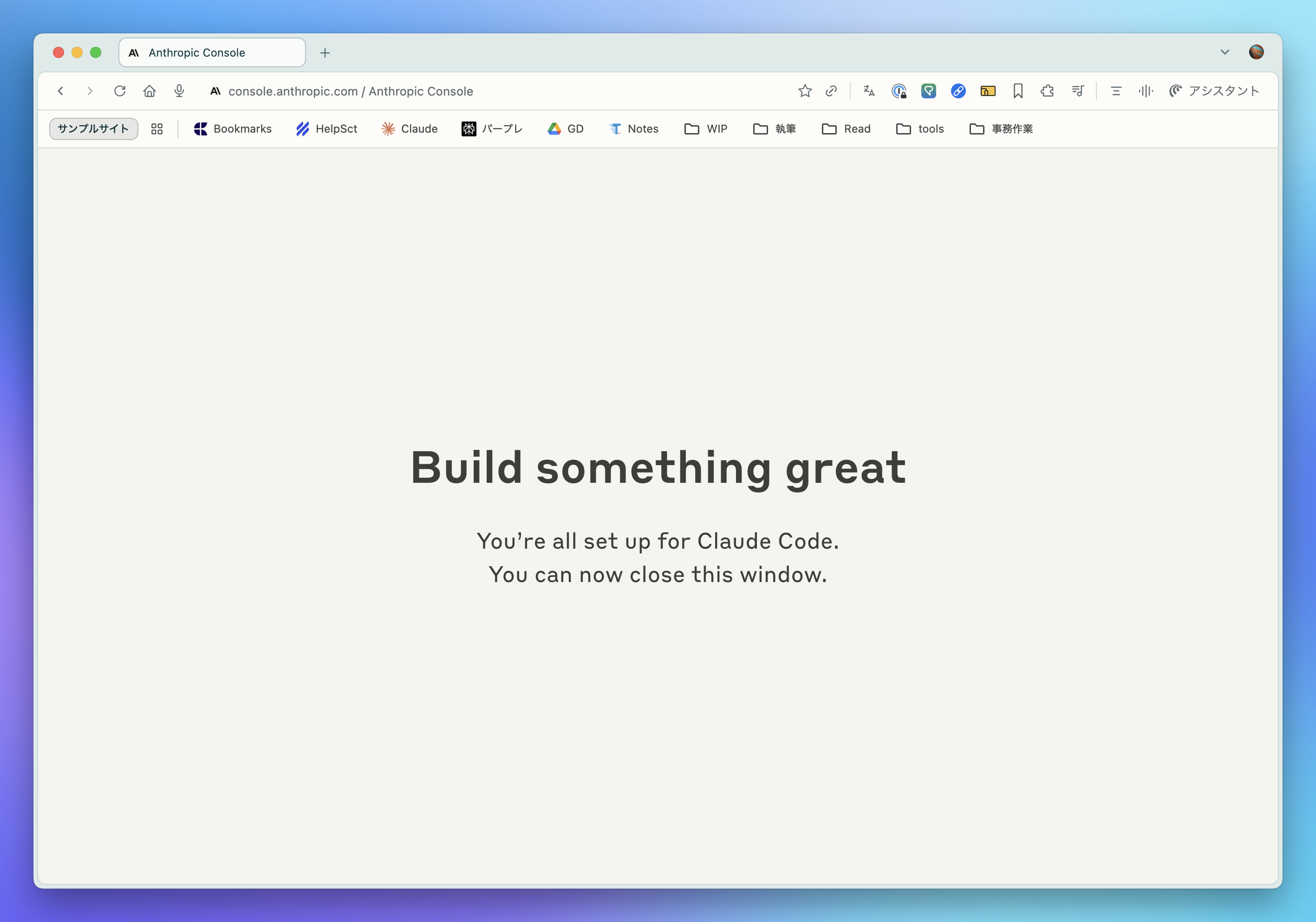 - ブラウザが開くので、Claude.ai の契約でログイン