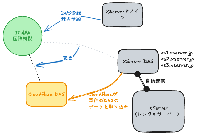 - 既存のネームサーバーをCloudflareのネームサーバーに変更