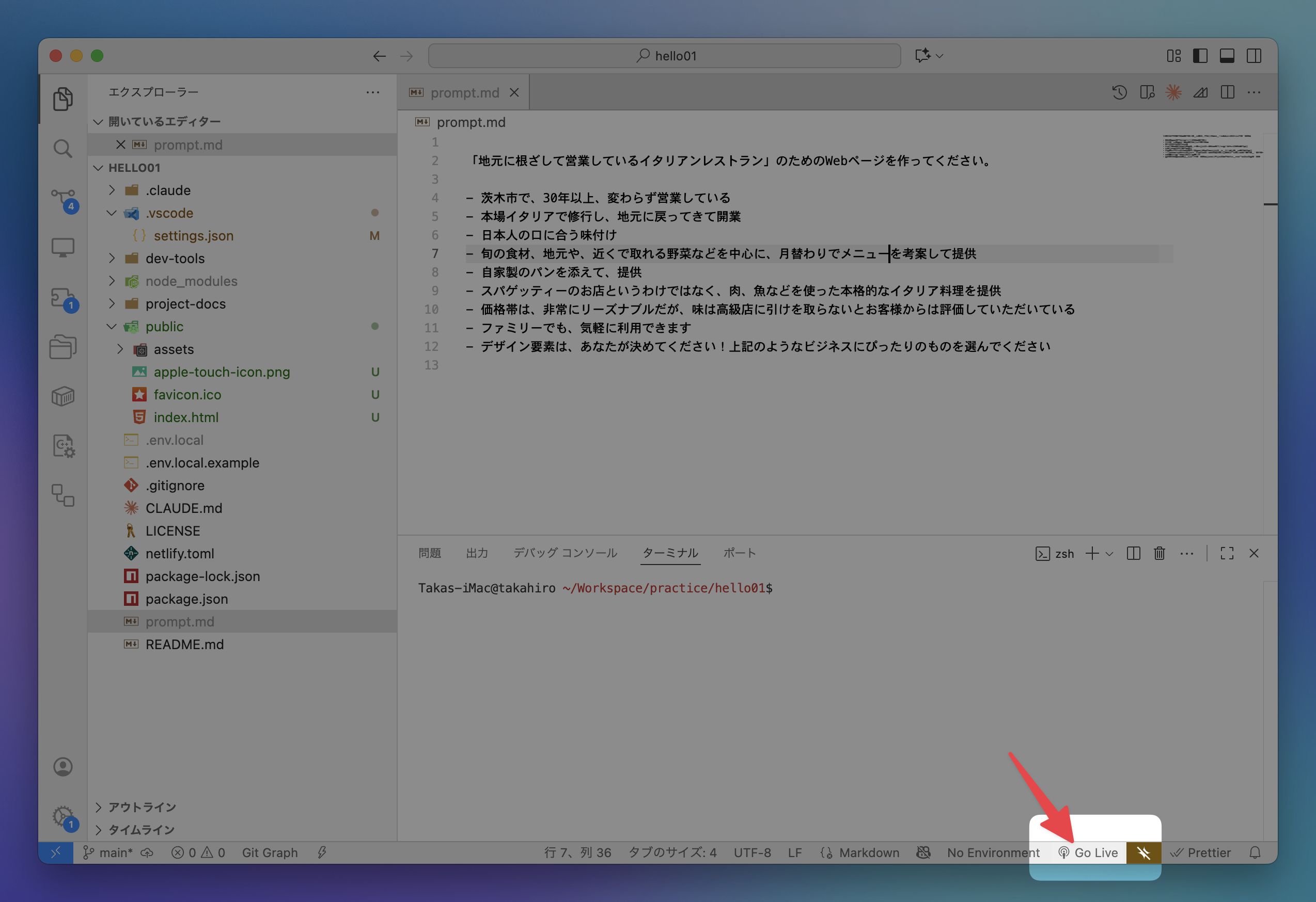 @prompt.mdと入力してEnterキーを押す- ファイルの内容をコピー&ペーストする